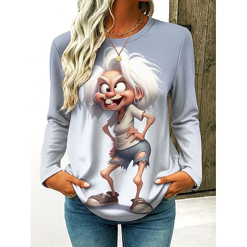 Per donna Maglietta Grafico Cartoni animati Sfumatura Vintage Elegante Classico Manica Lunga Girocollo Top Regolari Quotidiano Stampato Rosa Viola Cachi Grigio Primavera Autunno Inverno