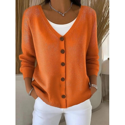 Per donna Felpa Cardigan Giacca maglione Elegante Giornaliero Morbido Colore puro A V Bottoni Lavorato a maglia Manica lunga Top regolari Maglia Interni Giornaliero Fine settimana Cammello Beige