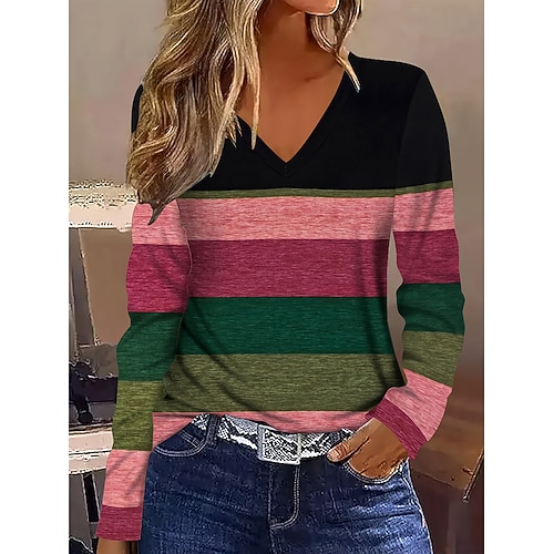 Per donna Maglietta Ombre Grafico A righe Vintage Elegante Classico Manica Lunga Scollo a V Top Regolari Quotidiano Stampato Rosa polverosa Primavera Autunno Inverno