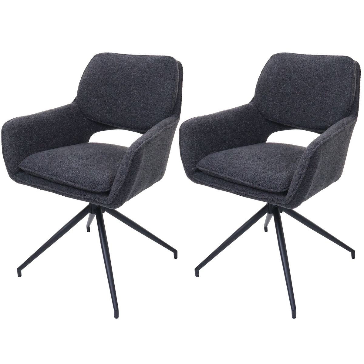 Mendler 2er-Set Esszimmerstuhl HWC-N74, Küchenstuhl, drehbar Auto-Return, Stoff Bouclé (540g/m²) Öko-Tex ~ dunkelgrau