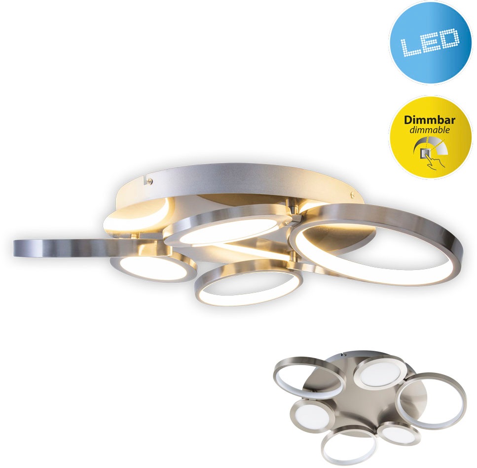 NÄVE LED Deckenleuchte "Firenze", silber, 1, Ø 50cm H: 8cm, 1 Stk., Leuchten, Durchmesser 50cm, warmweiße LED, hochwertig aus Metall in silber, LED Deckenleuchte