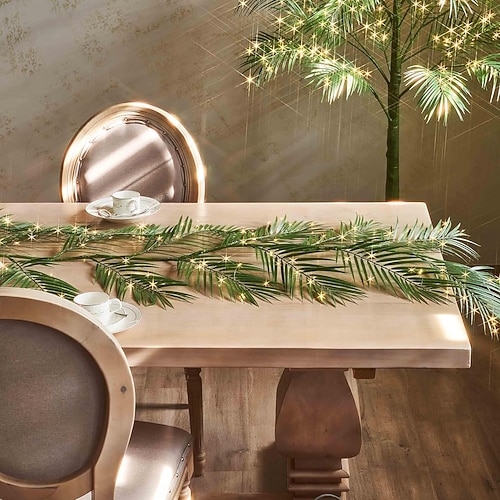 Simulazione di foglie di palma, foglie di vite, stringa di luci a LED da 1,8 m, 150 LED, batteria AAA a otto funzioni, per interni, camera da letto, sala da pranzo, soggiorno, decorazione per feste