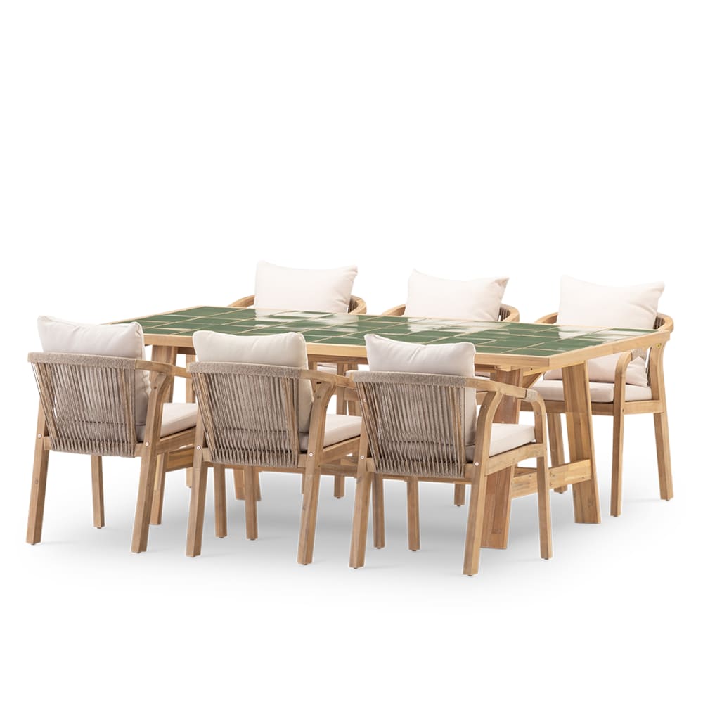 Set di 2 sedie da giardino in legno e corda, impilabili