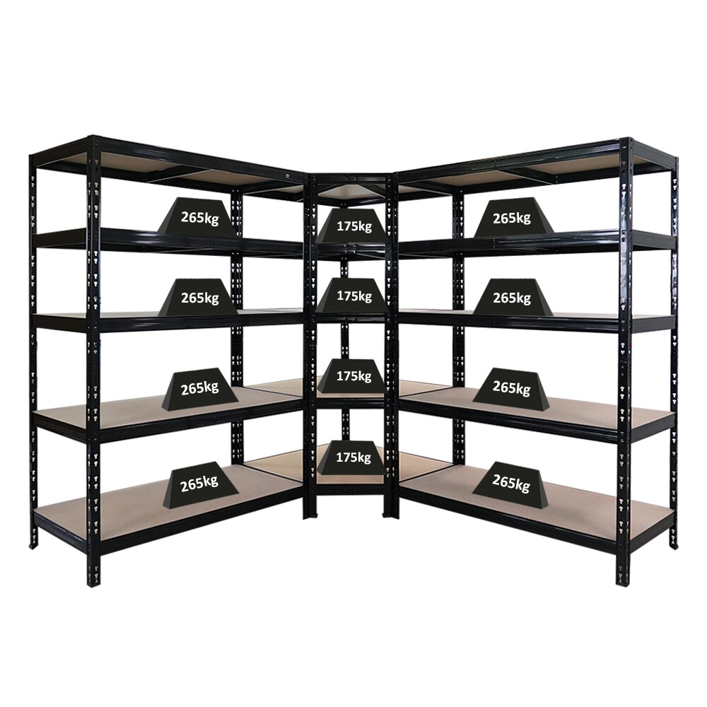 PROREGAL Mega Deal | 1x Eckregal + 2x Schwerlastregal Tiger | Fachlast 175 + 265 kg | Schwarz | Stecksystem Lagerregal Regalsystem 3 Stk.