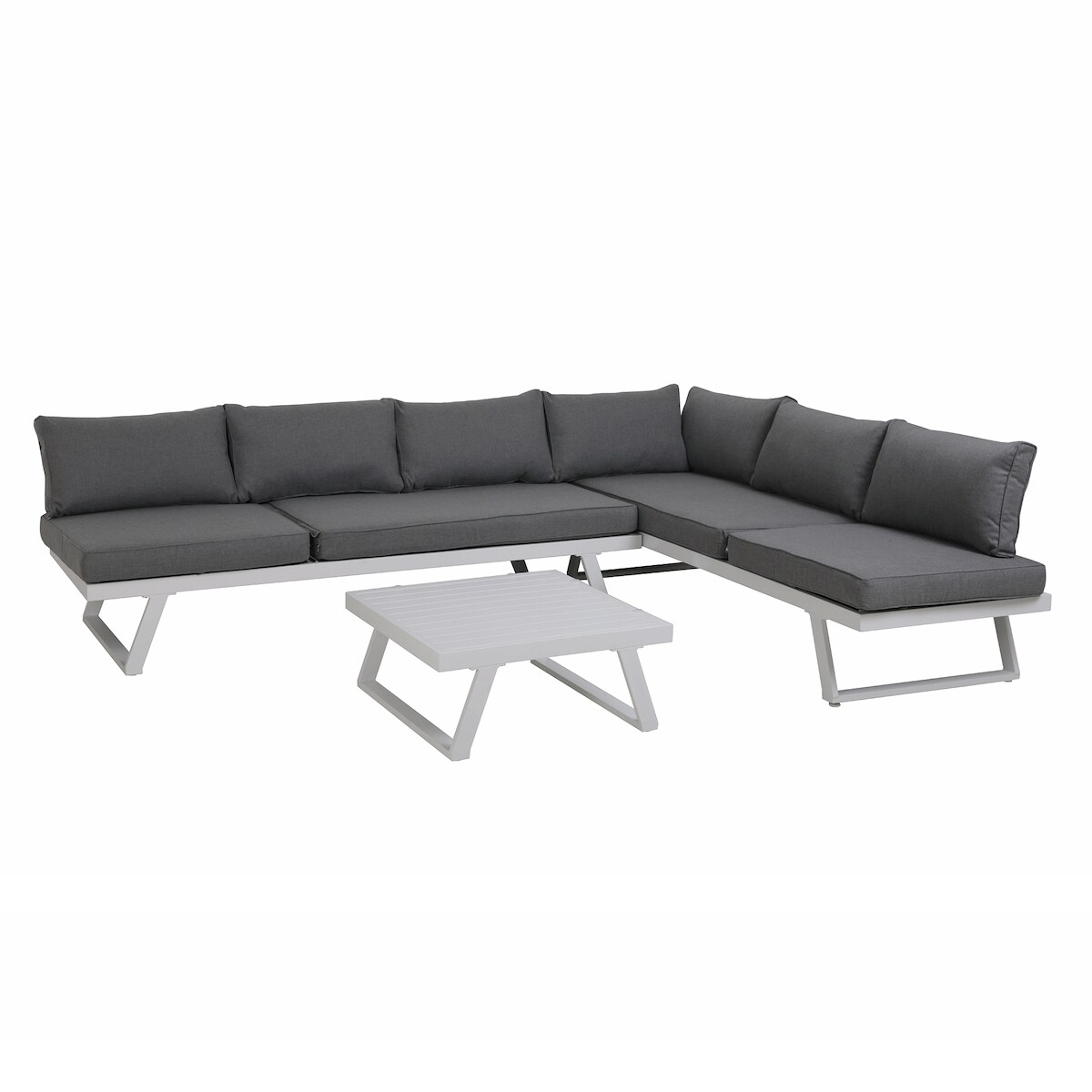 Möbilia 2-tlg. Garten-Sitzgruppe | 1 Ecksofa, 1 Couchtisch | Stahl anthrazit, Polyholz natur, Kissen grau | 28020044 | Serie GARTEN