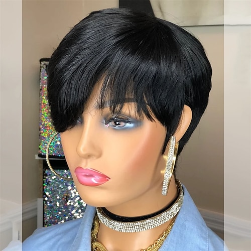parrucche taglio pixie per donne nere capelli umani brasiliani veri capelli umani parrucche pixie a strati corti con frangia per donne glueless nessuna parrucca anteriore in pizzo parrucca