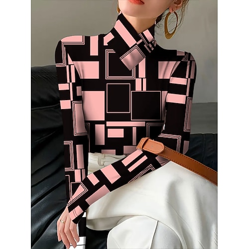 Per donna Maglietta Grafico Geometrico Elegante Vintage Classico Manica Lunga Collo Alto Collo asimmetrico Top Regolari Quotidiano Stampato A Strati Blu Nero Rosa Viola Verde Primavera Autunno Inverno