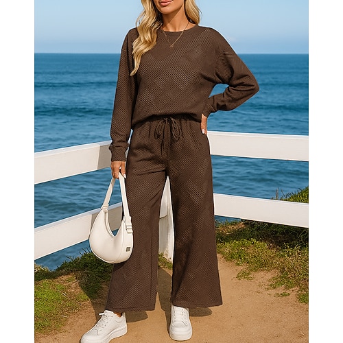 Per donna Pantaloni da Tuta Tuta da 2 pezzi Abbigliamento sportivo Gamba larga Tinta unita Completo Abbigliamento Autunno Nero Bianco All'aperto Viaggio Sportivo Traspirante Manica Lunga Sport