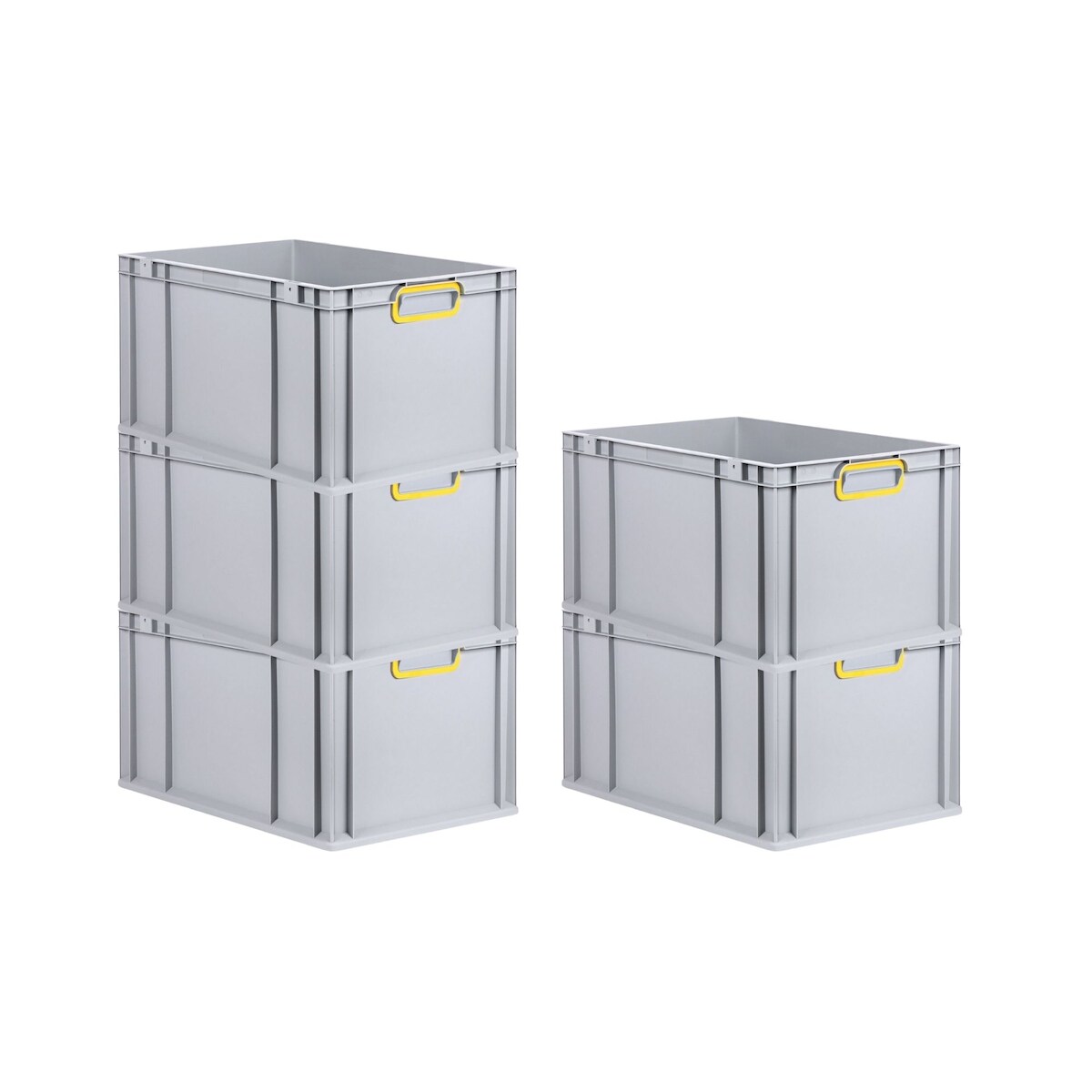 PROREGAL 5x Eurobox NextGen Color | HxBxT 22x40x60cm | 44 Liter | Griffe rot geschlossen | Verstärkter Boden | Eurobehälter
