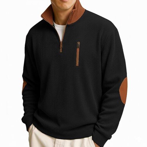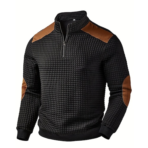 Per uomo Maglietta Waffle Maglietta Maglia Henley a nido d'ape Manica Lunga Colletto Polo Maglione Zip a un quarto Autunno Inverno Tinta unica Blocco di colori Tradizionale / Vintage Casual