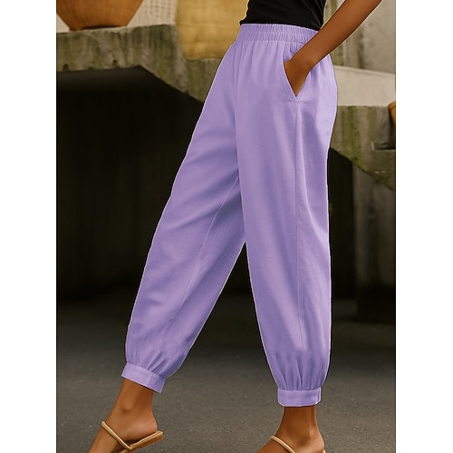 Per donna Chinos Casual Lunghezza intera Vita media Tinta unita Casual Quotidiano Rosa Blu Viola Cachi Primavera, Autunno, Inverno, Estate Vestibilità regolare