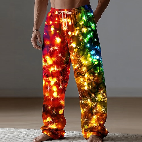 Natale Per uomo Glitter scintillanti Luci natalizie Pantaloni Pantaloni casual Misura del girovita medio Vita elastica con coulisse Casual All'aperto Ferie Pantaloni a gamba dritta Primavera Autunno