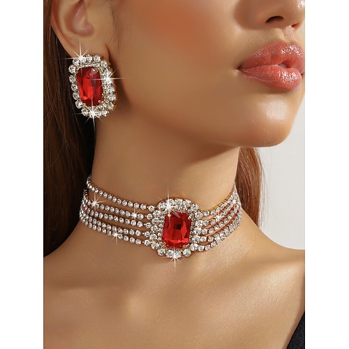 set di gioielli da donna in oro composto da 2 pezzi - collana con cristallo a goccia rossa orecchini, eleganti accessori da sposa con strass per matrimoni eventi di festa