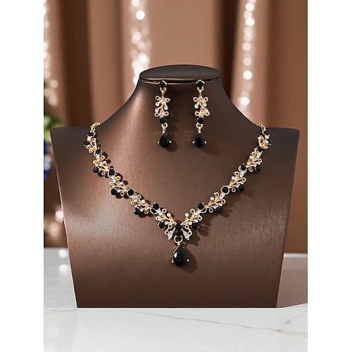 Elegante collana e orecchini da donna placcati in oro con cristalli scintillanti a forma di goccia: gioielli di lusso per matrimoni, feste ed eventi formali