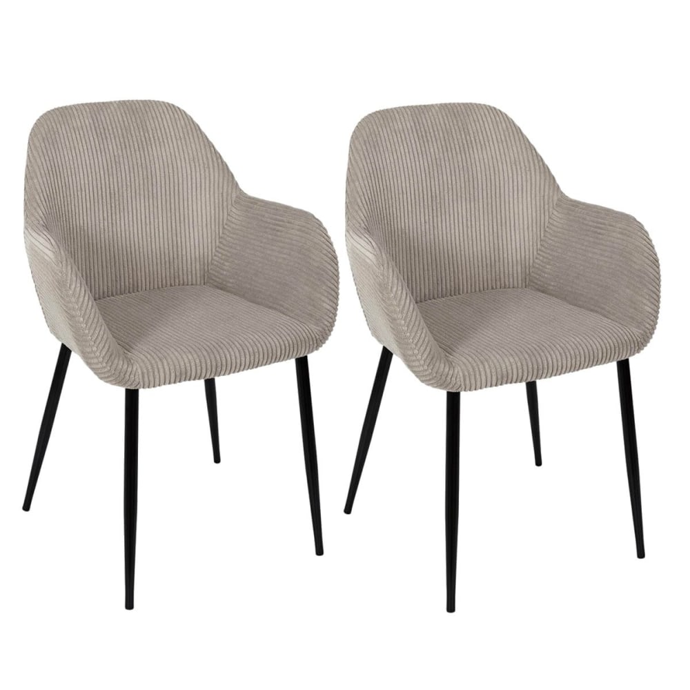 Lot de 2 fauteuils de table en velours côtelé coloris taupe
