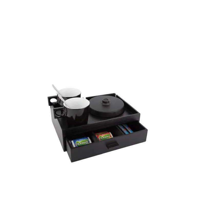 Willkommenstablett SMART Dunkelbraun und 2 schwarze Porzellantassen