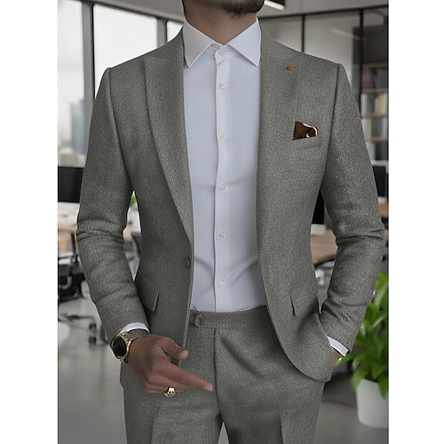Uomo Affari Casuale Completi in Tweed Bavero classico Nero Grigio chiaro Affari Formale Spina di Pesce Vestibilità su misura 3 pezzi Monopetto Due Bottoni