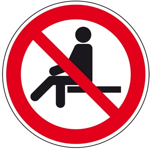 Aufkleber I Verbotsschild Sitzen verboten, Folie, selbstklebend, Ø 100mm, DIN EN ISO 7010 P018