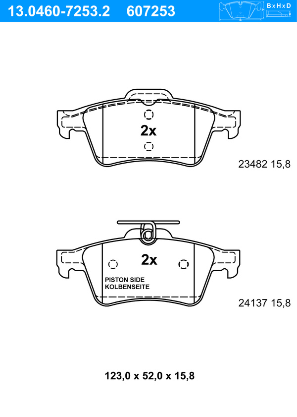 ATE Bremsbelagsatz, Scheibenbremse 13.0460-7253.2 hinten rechts links für CITROËN 425405