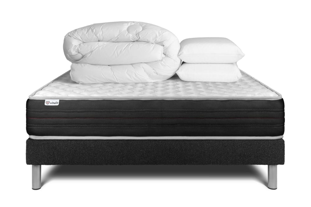 Vitalit Pack sommier kit matelas Mémoire de forme 140x200 Noir Complet Noir 200x47x140cm