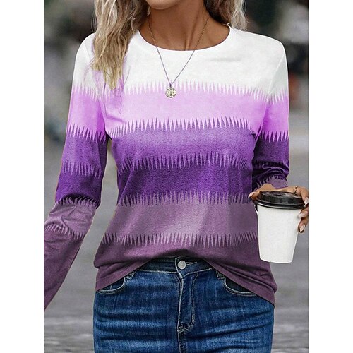Per donna Maglietta Grafico A righe Vintage Elegante Classico Manica Lunga Girocollo Top Regolari Quotidiano Stampato Giallo Rosa Blu Primavera Autunno Inverno