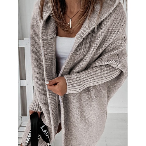 Per donna Felpa Cardigan Elegante Moda Streetwear Colore Puro Con Cappuccio Lavorato a maglia Con cappuccio Manica Lunga Top lunghi Maglia All'aperto Quotidiano Weekend Bianco Blu Autunno Inverno