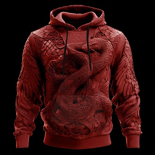 Per uomo Drago 3D Felpa con Cappuccio Felpa Cool Festa Manica Lunga Girocollo Club Abbigliamento casual alla moda Giallo Rosso Blu Grigio Coulisse Autunno Inverno progettista S M L XL XXL XXXL