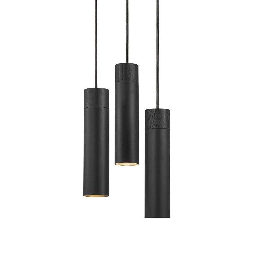 Lampada a sospensione nordica 3 luci in metallo e legno nero ø22 cm