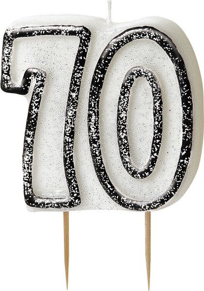 70. Geburtstag | Glitzer Kerze schwarz / silber
