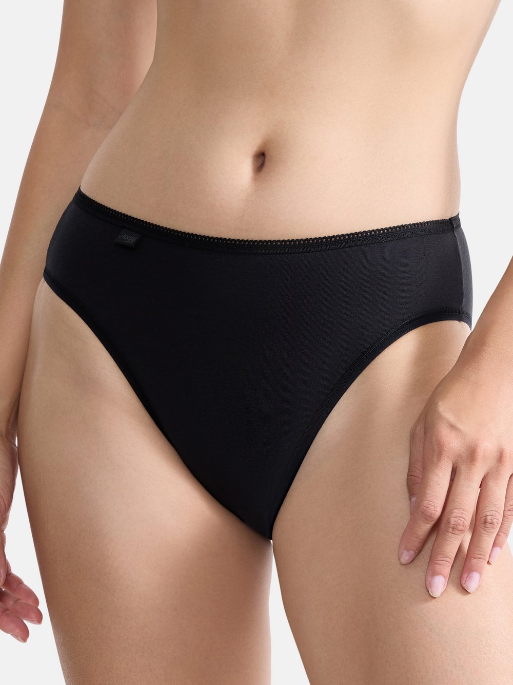 Slip SASSA, Damen, Gr. 44, 2 Stk., schwarz-weiß (weiß, schwarz), 85% Polyamid, 15% Elasthan, Unterhosen Slip