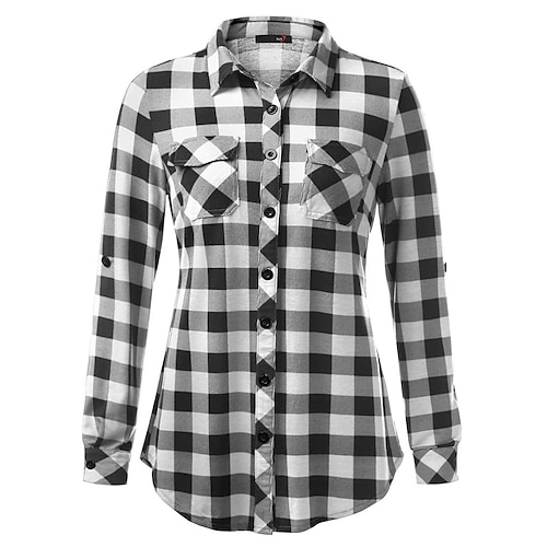 Per donna Camicia Blusa Plaid Semplice Elegante Vintage Signore Manica Lunga Colletto a Camicia Top Regolari Quotidiano Lavoro Ferie Arricciato Patchwork Tasca Blu Nero Giallo Rosso Viola chiaro