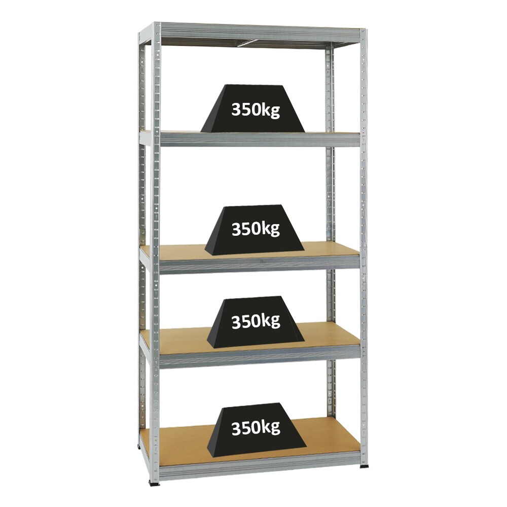 PROREGAL Schwerlastregal Slim Elephant S | HxBxT 180x90x45 cm | 5 Ebenen | Fachlast 350 kg | Verzinkt | Stecksystem Lagerregal Regalsystem