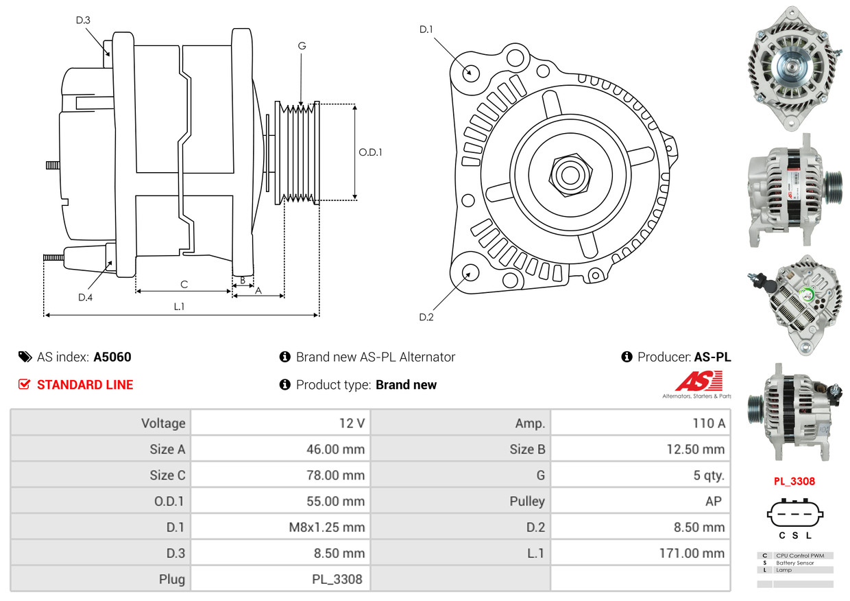 AS-PL Generator A5060 12V 110A für MITSUBISHI SAAB SUBARU A3TG0491 A3TG0591 A003TG0591