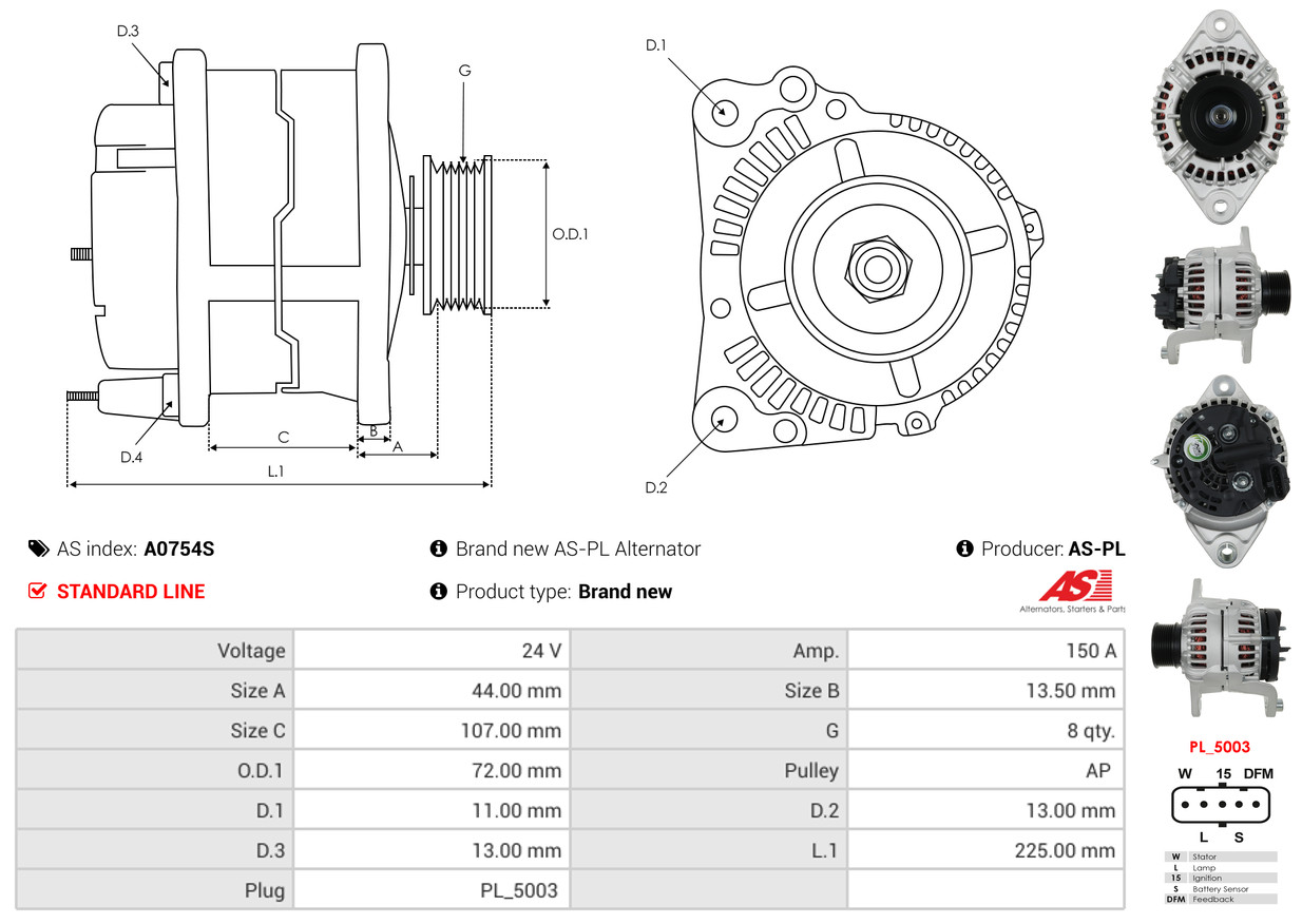 AS-PL Generator A0754S Universal 24V 150A für RENAULT VOLVO 85020836 85013475 7421304674