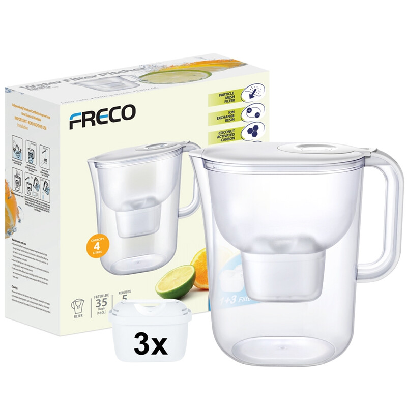 Freco by Bluetech Wasserspender mit Filter, 4 L, LCD-Timer, inklusive 3 Filterkartuschen, ca. 35 Tage je Filterkartusche