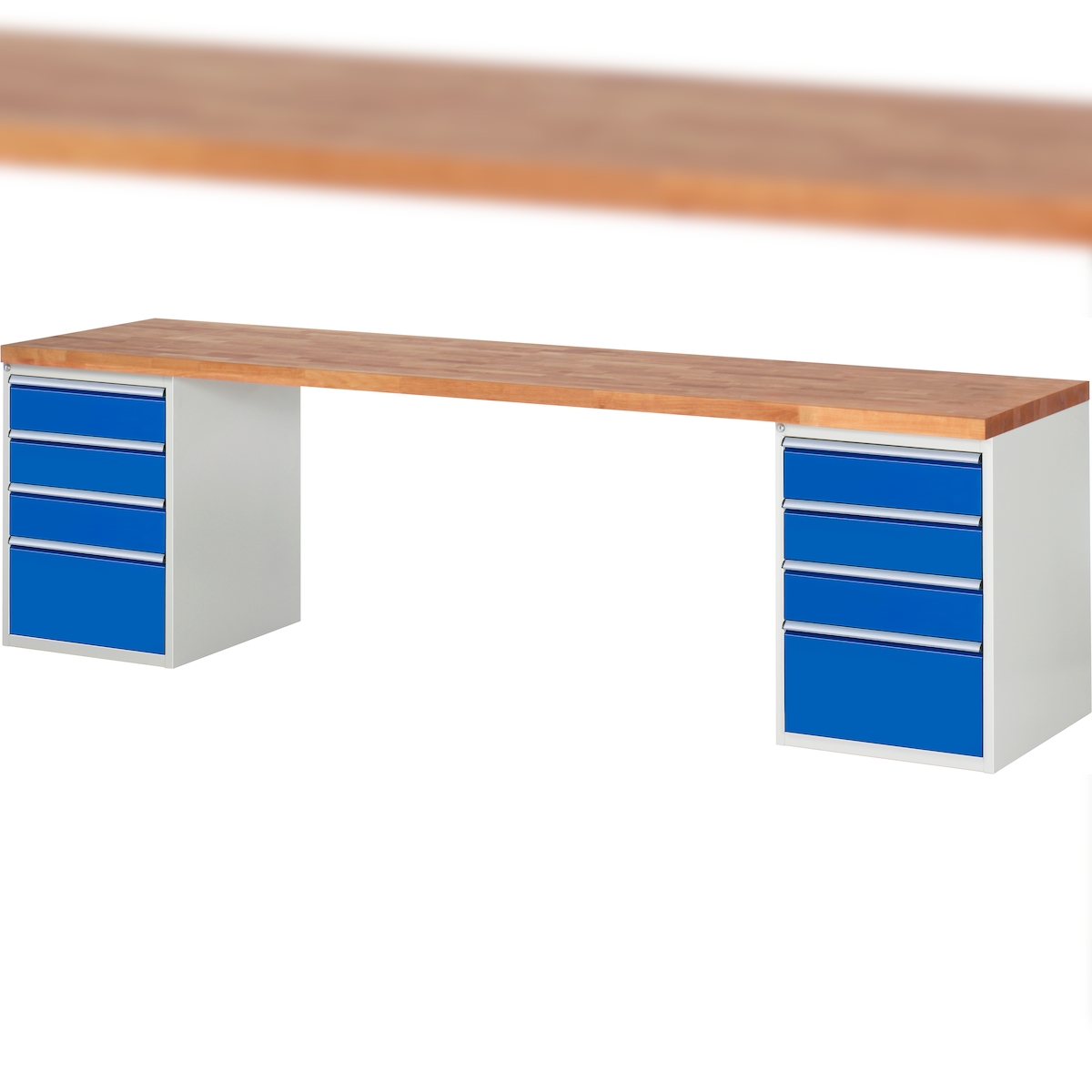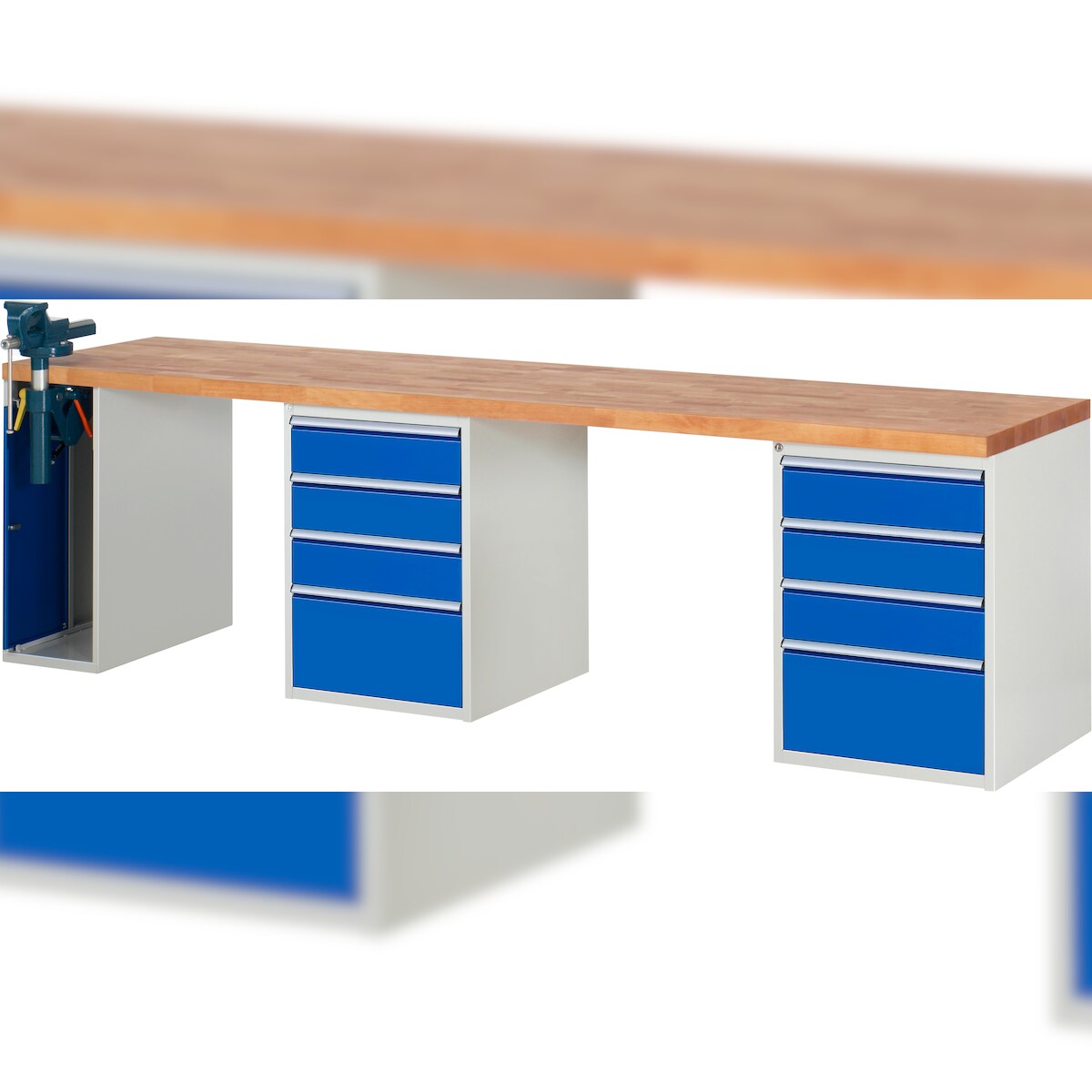PROREGAL Werkbank Serie 7000 - Modell 7510 | HxBxT 89x250x90cm | 4x Schublade + 1x Schrank inkl. SchPROREGALbstock | Schubladenmaße 3x150 + 1x270mm