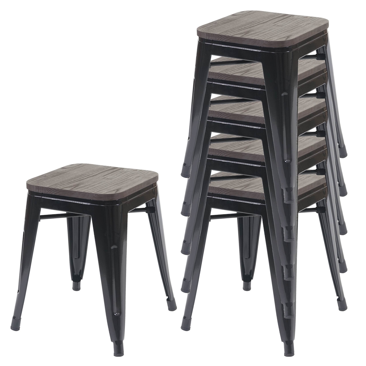 Mendler 6er-Set Hocker HWC-A73 inkl. Holz-Sitzfläche, Metallhocker Sitzhocker, Metall Industriedesign stapelbar ~ schwarz