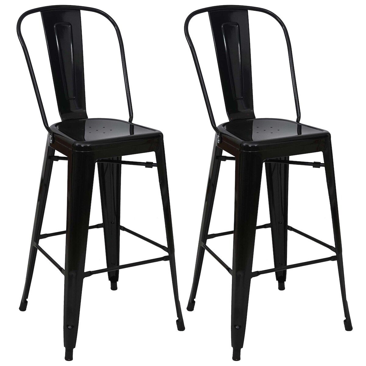 Mendler 4er-Set Barhocker HWC-A73, Barstuhl Tresenhocker mit Lehne, Metall Industriedesign ~ schwarz