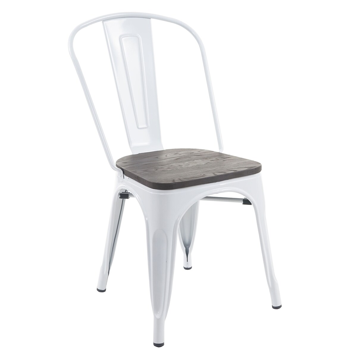 Mendler Stuhl HWC-A73 inkl. Holz-Sitzfläche, Bistrostuhl Stapelstuhl, Metall Industriedesign stapelbar ~ weiß