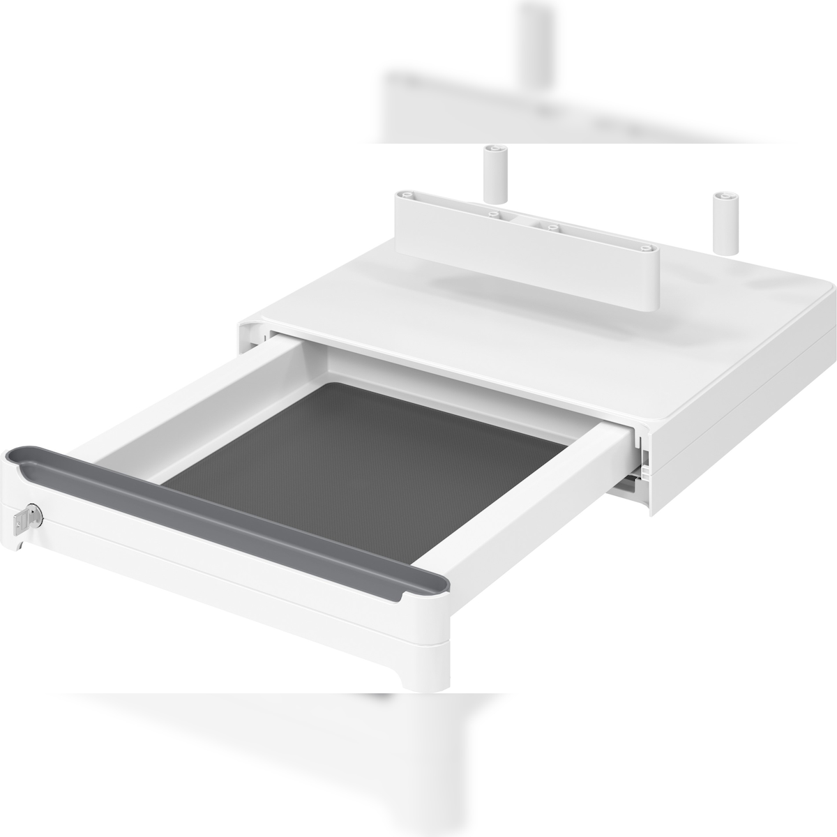 bümö Schreibtisch Organizer Schublade abschließbar aus Kunststoff in weiß mit Schloss & Antirutschmatte - Design reddot winner 2020, Premium