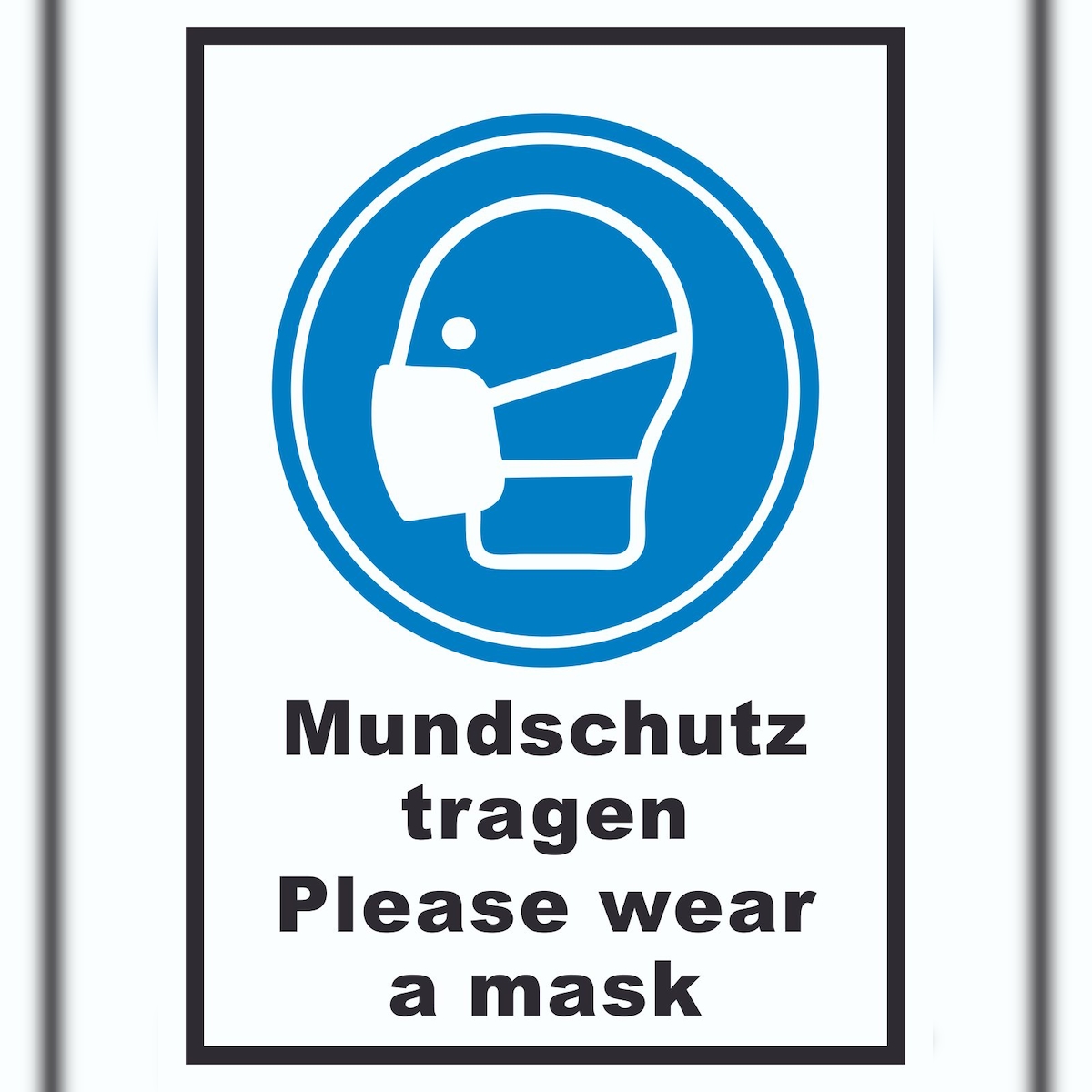 HB-Druck Mundschutz tragen Please wear a mask Schild A4 (210x297mm)