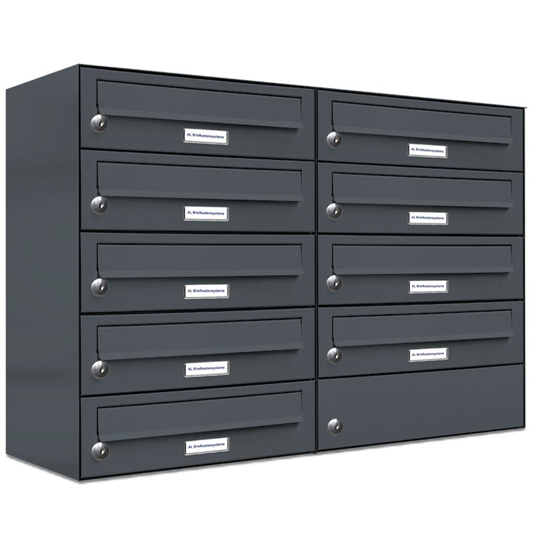 AL Briefkastensysteme 10 Fächer Premium Wand Briefkasten Anlage in RAL 7016 Anthrazit Grau, Post A4, robust, wetterfest, Artikelnummer: 132P10EA2P7016