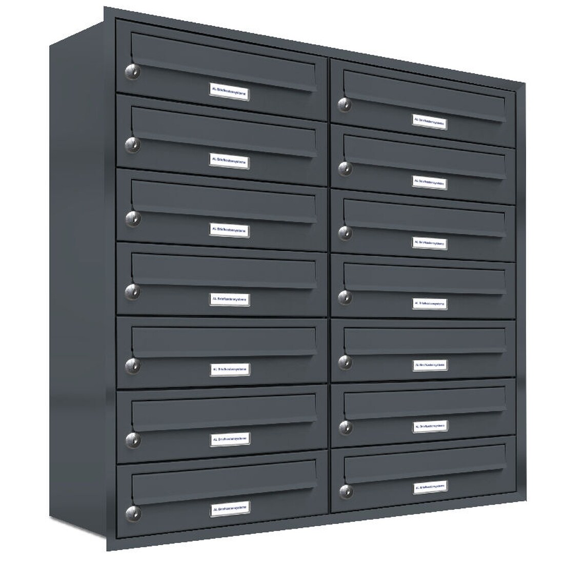 AL Briefkastensysteme 14 Fächer Premium Unterputz Briefkasten Anlage RAL 7016 Anthrazit Grau, Post A4, modern, wetterfest, Artikelnummer 132P14U2P7016