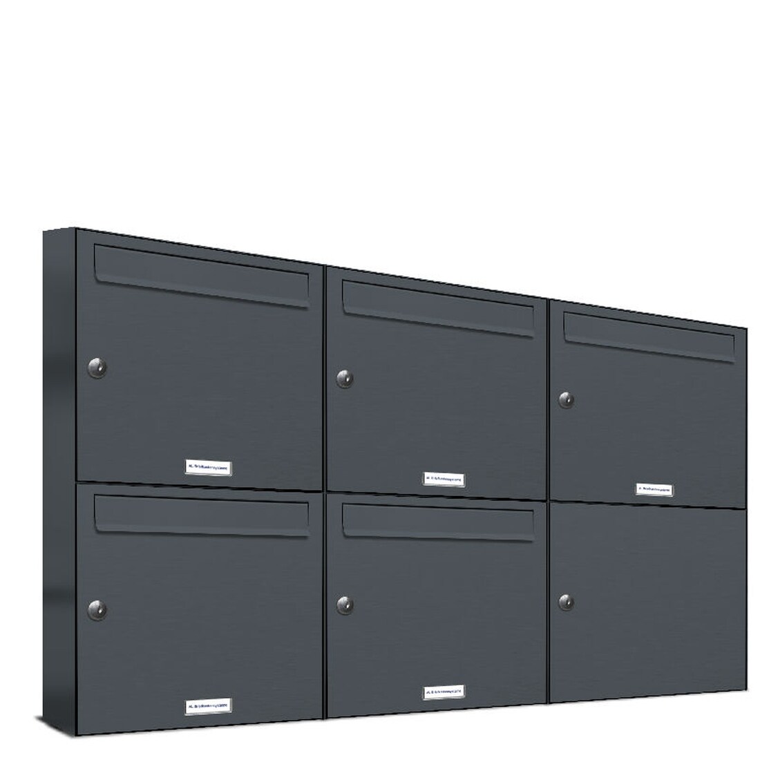 AL Briefkastensysteme 6 Fächer Premium Wand Briefkasten Anlage A4, in RAL 7016 Anthrazit Grau und wetterfest, Artikelnummer: 331P6EA3P7016