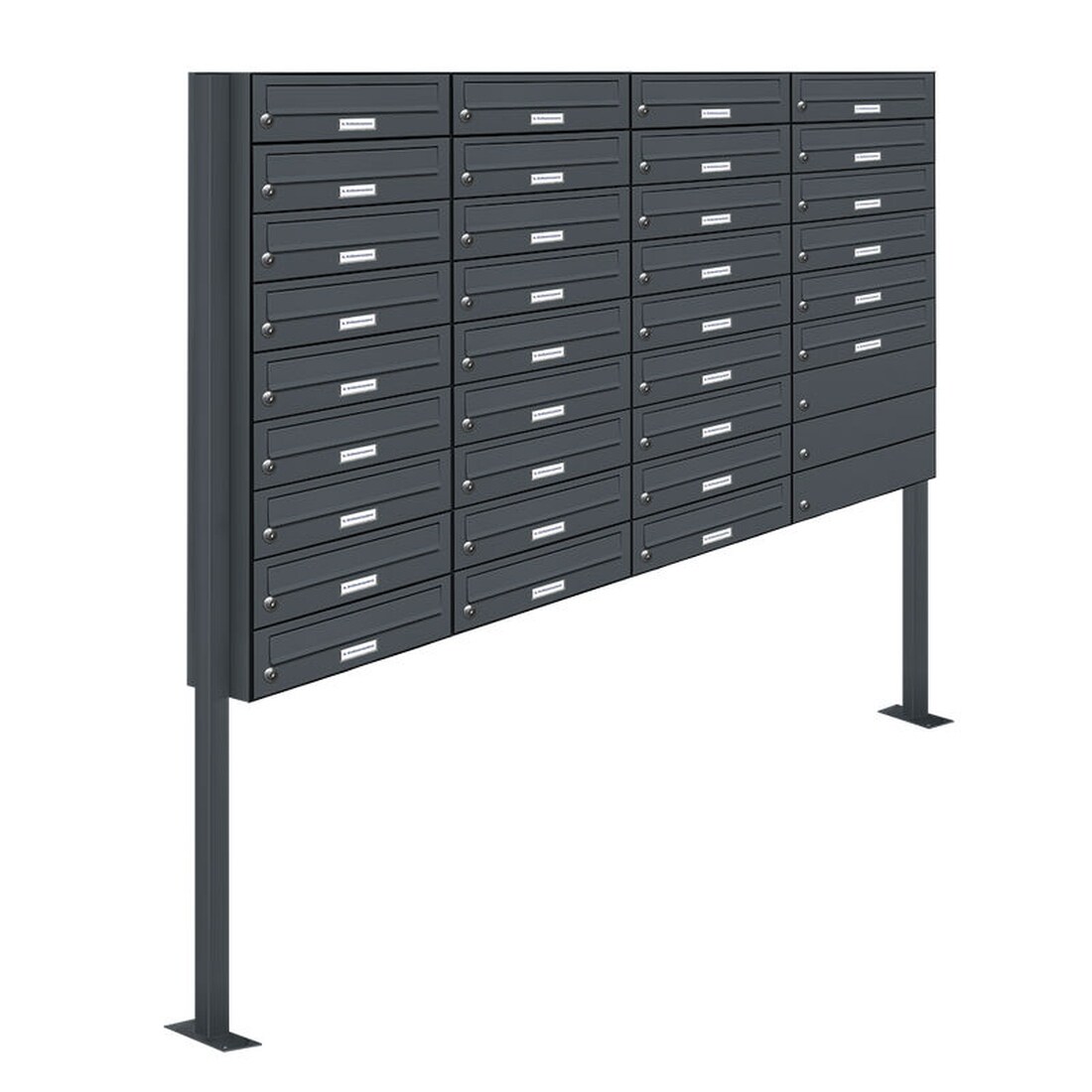 AL Briefkastensysteme 33 Fächer Premium Stand Briefkasten Anlage in RAL 7016 Anthrazit Grau, Post A4, robust, wetterfest, Artikelnummer: 132P33S4P7016