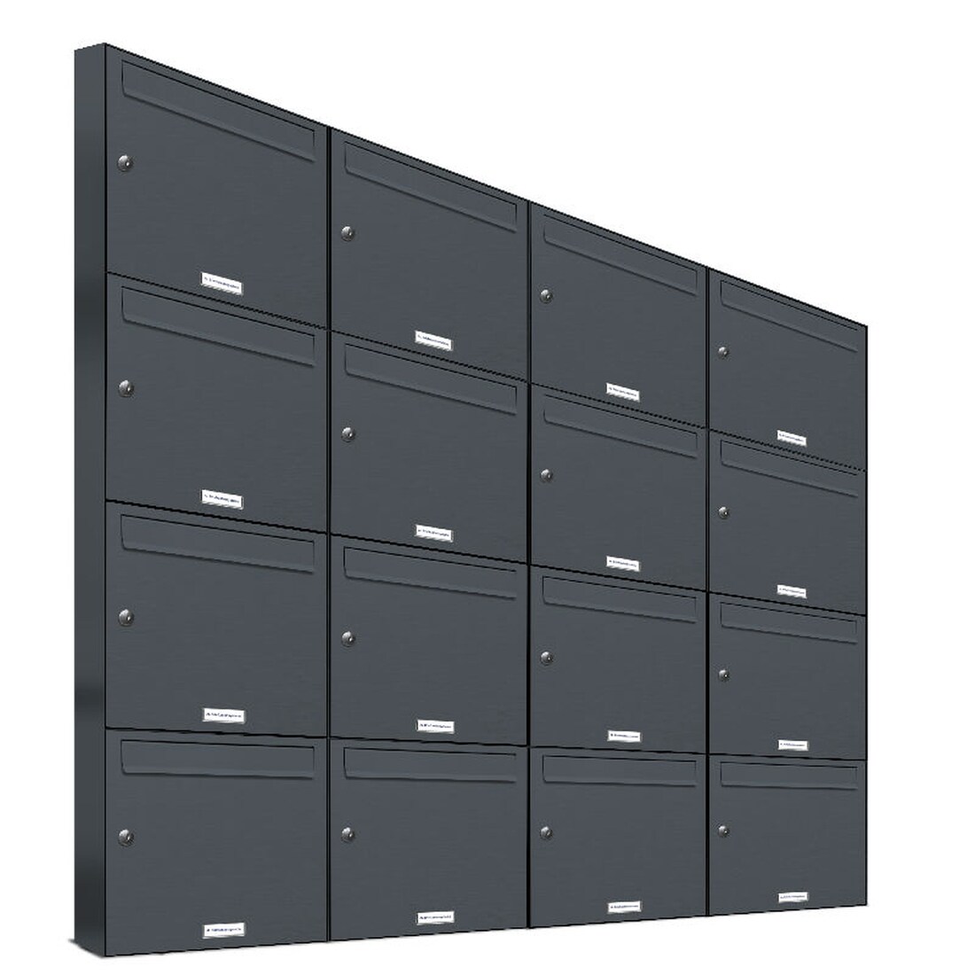 AL Briefkastensysteme 16 Fächer Premium Wand Briefkasten Anlage A4, in RAL 7016 Anthrazit Grau und wetterfest, Artikelnummer: 331P16EA4