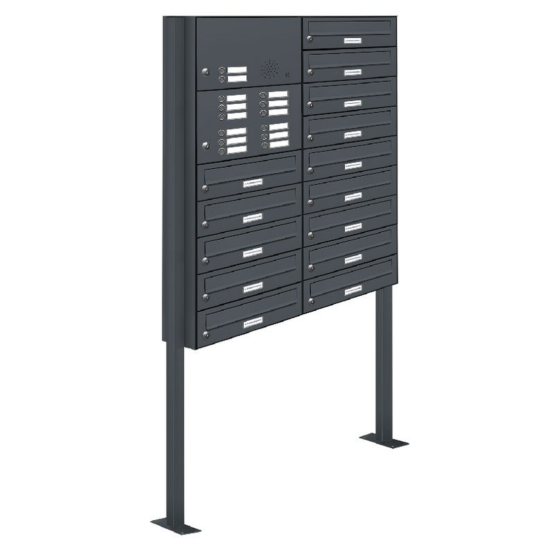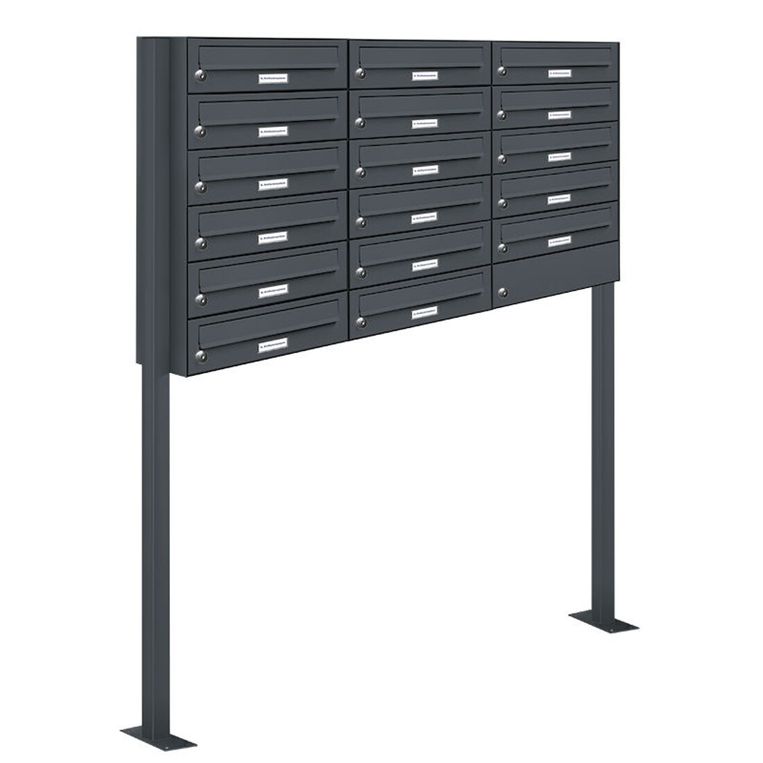 AL Briefkastensysteme 17 Fächer Premium Stand Briefkasten Anlage in RAL 7016 Anthrazit Grau, Post A4, robust, wetterfest, Artikelnummer: 132P17S3P7016