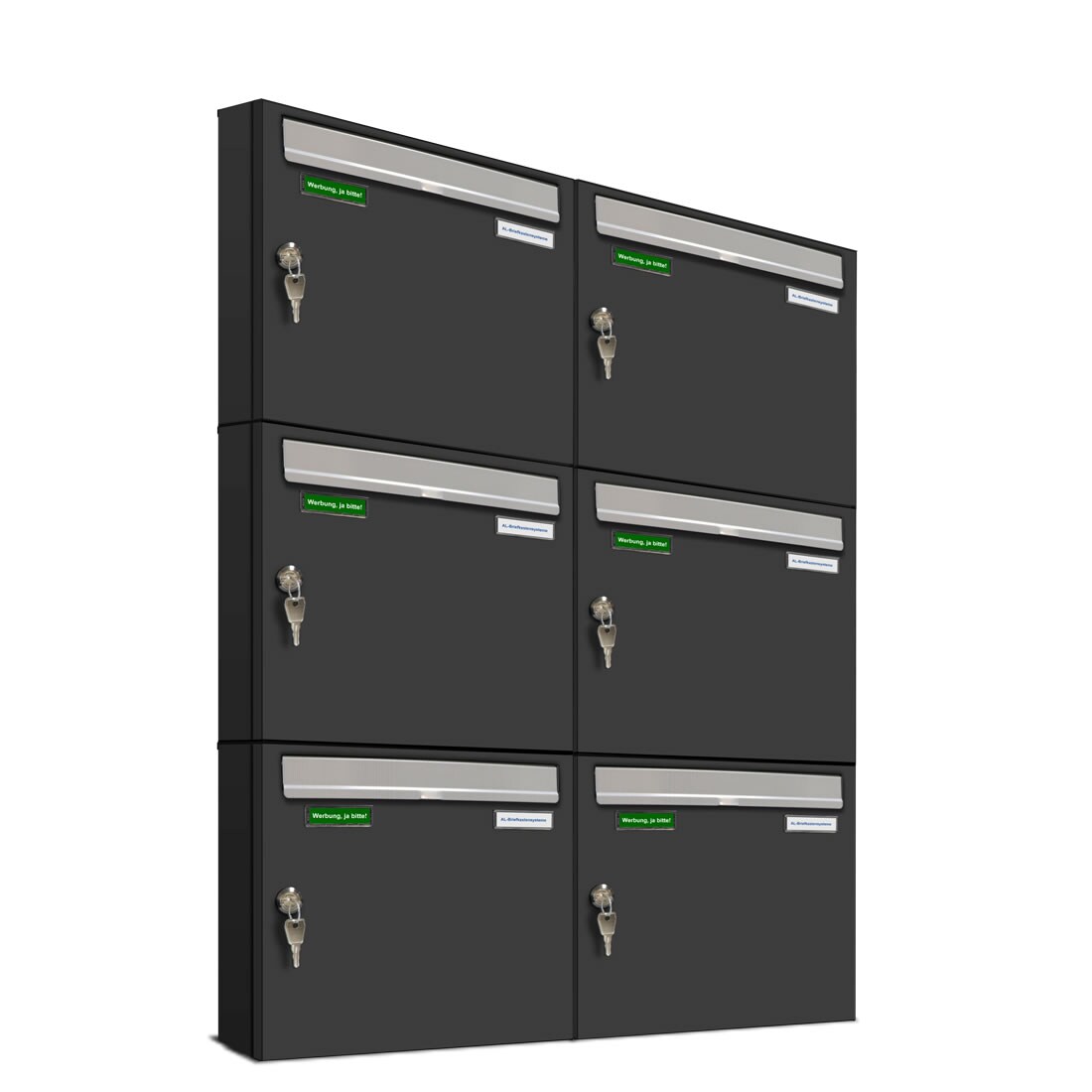 AL Briefkastensysteme 6 x Basic Wand Briefkasten in RAL 7016 Anthrazit Grau für Post A4, wetterfest, Artikelnummer: 431P6EA2P7016/9006
