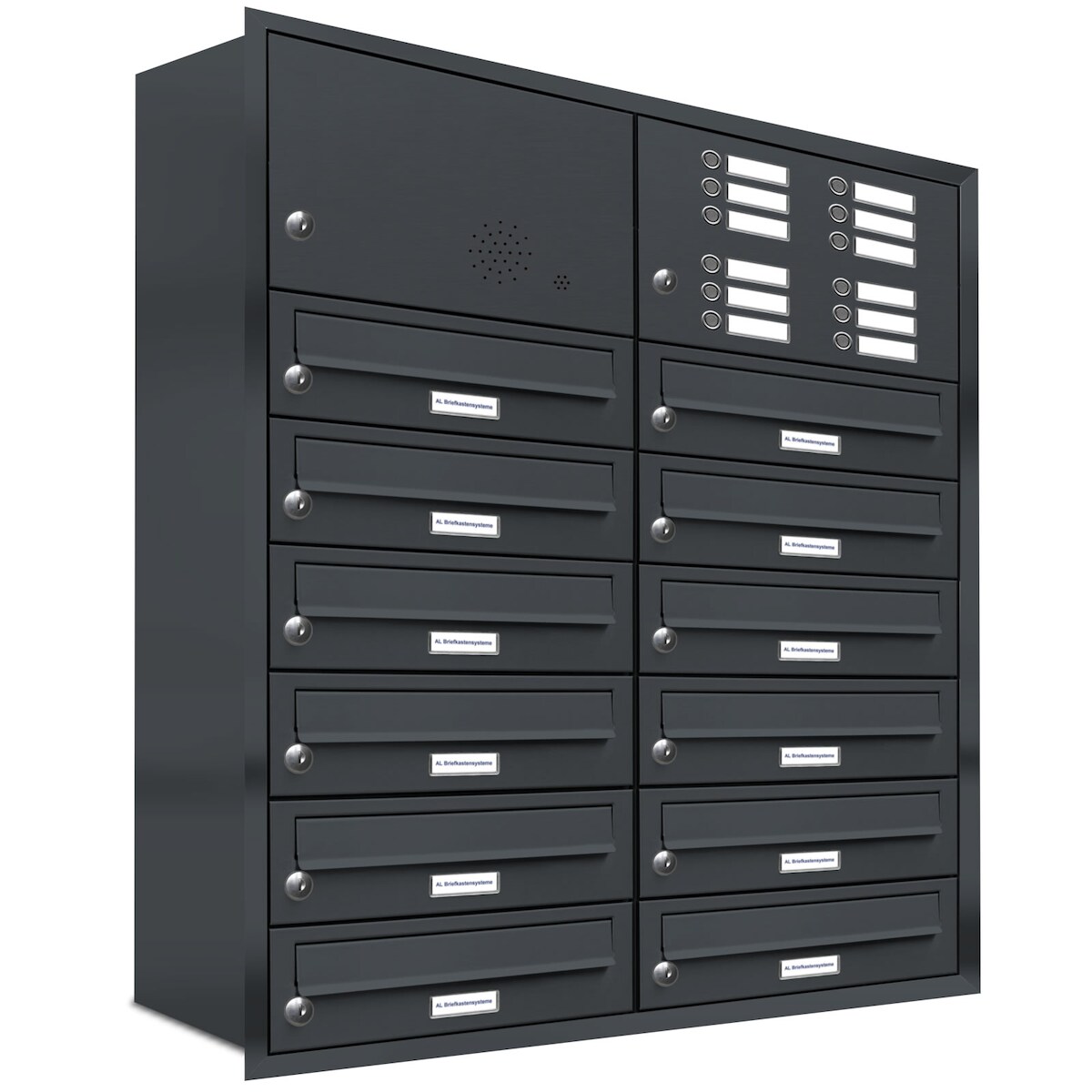 AL Briefkastensysteme 12 Fächer Premium Unterputz Briefkasten Anlage RAL 7016 Anthrazit Grau, Post A4, wetterfest, Artikelnummer: 132P12U2KSP7016