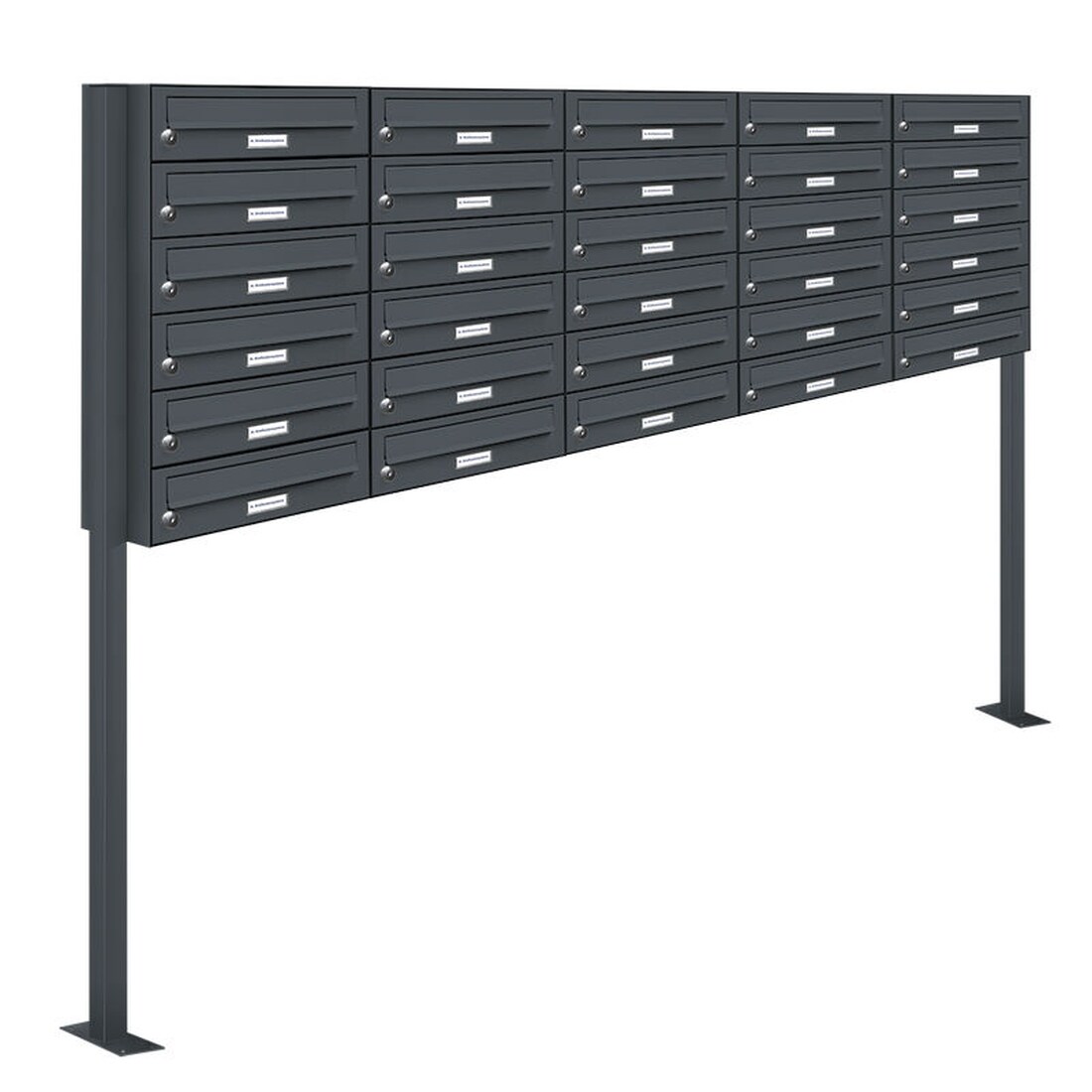 AL Briefkastensysteme 30 Fächer Premium Stand Briefkasten Anlage in RAL 7016 Anthrazit Grau, Post A4, robust, wetterfest, Artikelnummer: 132P30S5P7016
